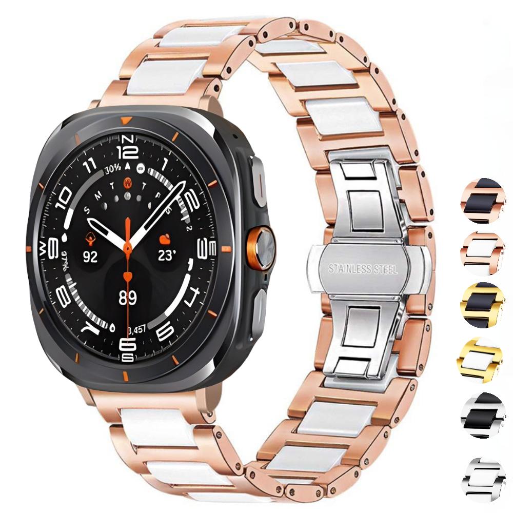 Ceramic+Metal Strap For Samsung Galaxy Watch Ultra 47mm Women/Man Luxury Bracelet Band Galaxy Watch 7 Ultra Stainless Steel Belt