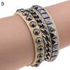 Kadın Katmanlı Punk Rock Perçin Bileklik Çivili Suni Deri Metal Zincir Bileklik