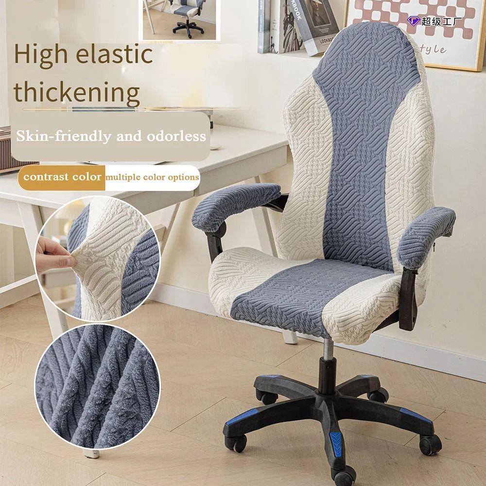 1Set Elastic Stretch Gaming Chair Cover Office Computer Chair Fleece Jacquard Chair Cover Set Color Patchwork With Armrest Cover