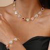 Colorful Heart-shaped Jewelry Set Vintage Earrings Hand Chain Waterproof Heart Glass Necklace Gift