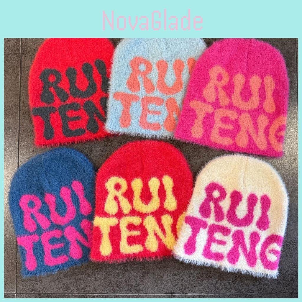 Ruiteng Letter Knit Hat Girls Winter Warmth Beanie With Breathable Plush Fabric For Casual Streetwear