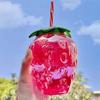 500ml PET Strawberry Shaped Children's Straw Mug Clear Strawberry Juice Mug Cold Water Mug Photography Accessories