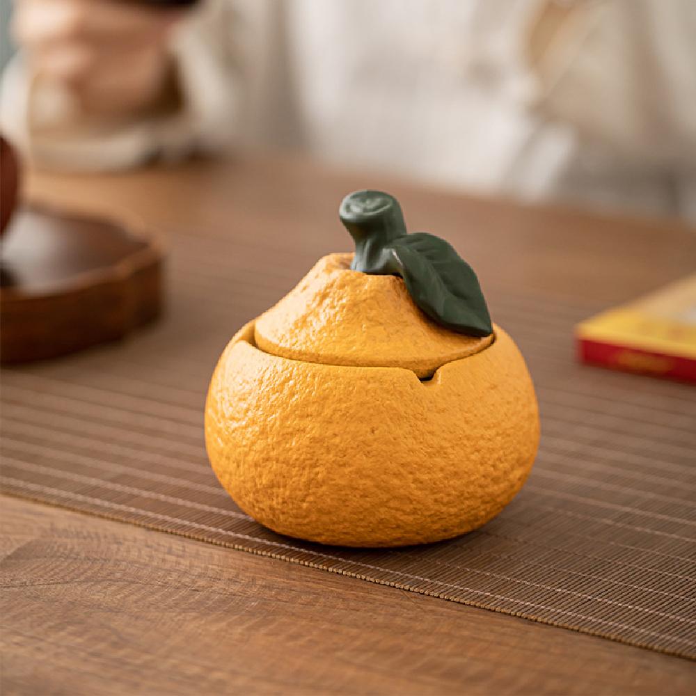Orange Ashtray Windproof Dustproof Household Desk Tea Table Office Large Capacity Modern Minimalist Style Ceramic Material