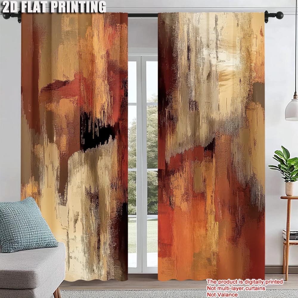 Set Of 2 Artistic Abstract Rust Curtains Decorative Art Suitable Bedroom Living Room Design Curtain Polyester Machine Washable Ideal For Great