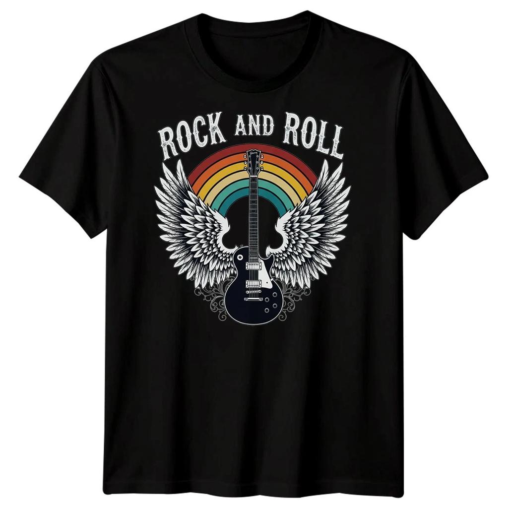 Rock And Roll Guitar Wings Music Mens T-Shirt Retro Graphic Apparel
