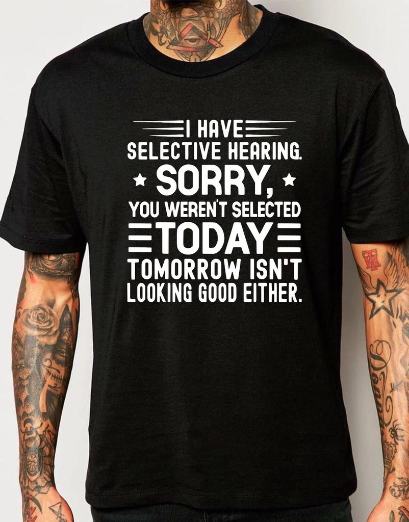 I Have Selective Hearing Funny Sarcastic T-Shirt Attitude Rude Arrogant Gift Tee