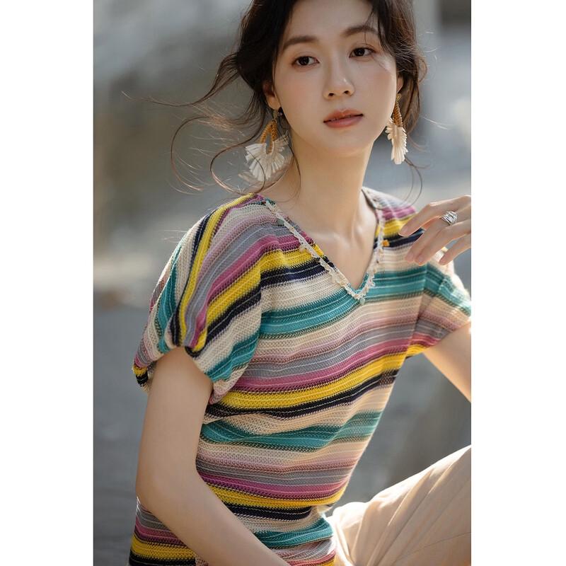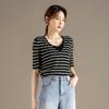 Demana Romantic Sweetheart V-Neck Stripe T-Shirt