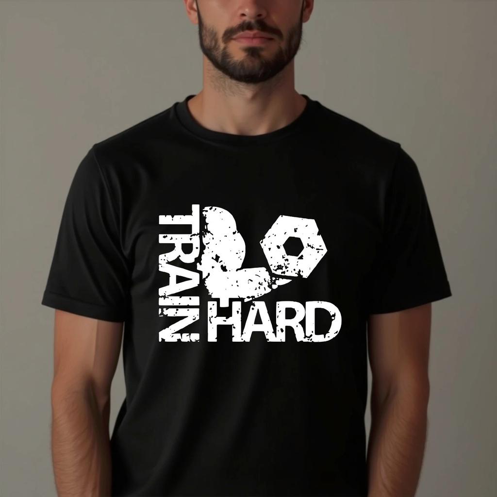 Train Hard Muscle Fit Gym T-Shirt, Bodybuilding Workout Fit Training Men's Top