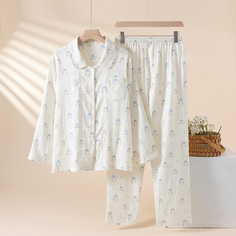 JingJingRS Women's Long-Sleeve Cotton Gauze Pajama Set