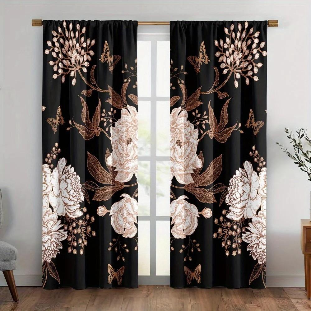 Room Darkening Jit Peony Floral Curtains Design Polyester Drapes Home Decor Holiday Window Dressing Curtain Set Of 2 Elegant Made With Rod Pocket