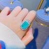 Open Ring Luxury Emerald Cotton Inclusions Imitation Full Diamond Paraba Gemstone Statement Ring