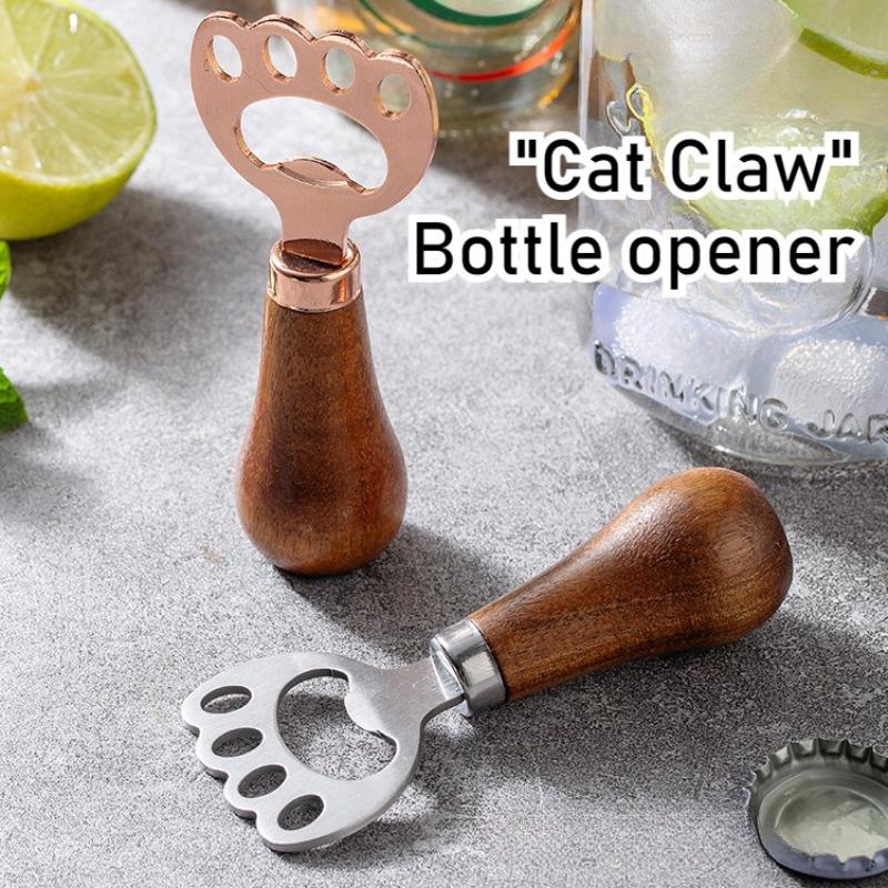 Portable Beer Bottle Opener Stainless Steel Acacia Wood Beer Bottle Opener Creative Cat Claw Vertical Cute Cap Opener 1pcs