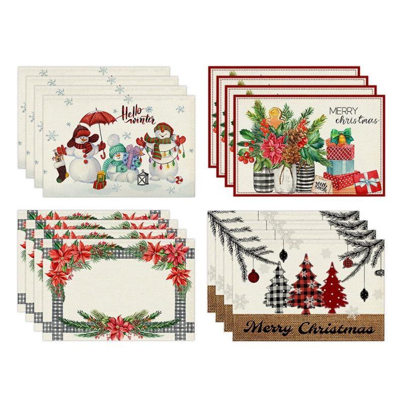 Christmas-Themed Linen Placemats Heat-Resistant Suitable for Kitchen Table Mats for Indoor Gatherings Seasonal Fall Table Decor