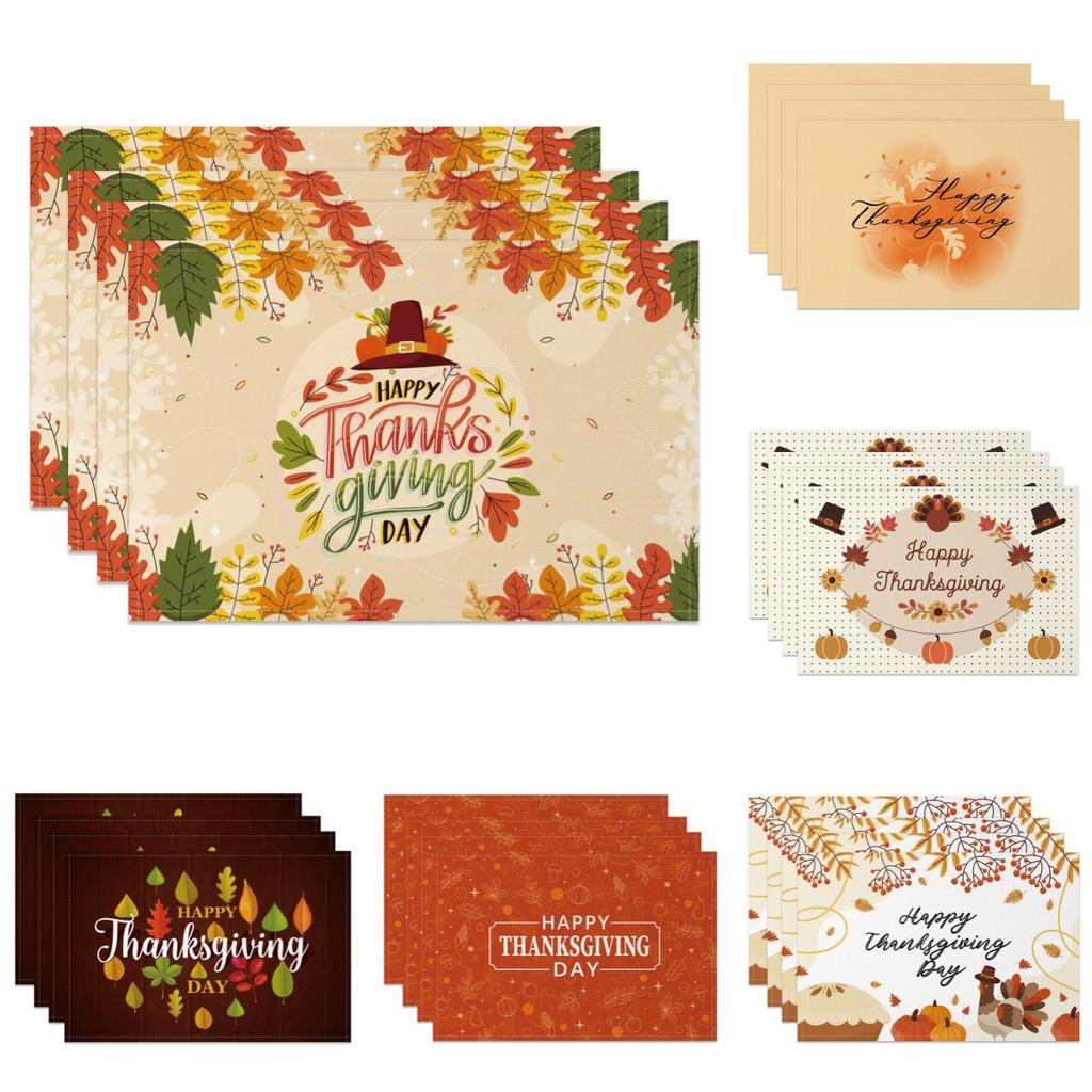 Thanksgiving Placemat Fall Harvest Table Decor Pumpkin Maple Leaf Pattern Printing Seasonal Holiday Dining Mats for Family Party