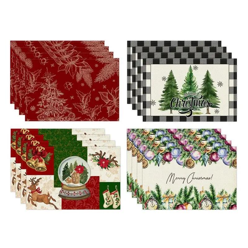 Christmas Linen Placemat Christmas Theme Table Mat Heat Insulation Pad Western Meal Table Pad Dining Table Decor