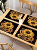 1PC Sunflower Linen Meal Mat Printed Retro Placemat for Table Decoration Kitchen Tabletop Protection and Heat Resistance
