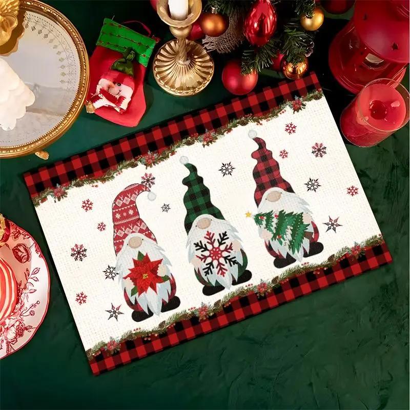 1PC Christmas Placemats Linen Christmas Trees Snowflake Gnome Print Table Mats Xmas Table Pads for Home Hotel