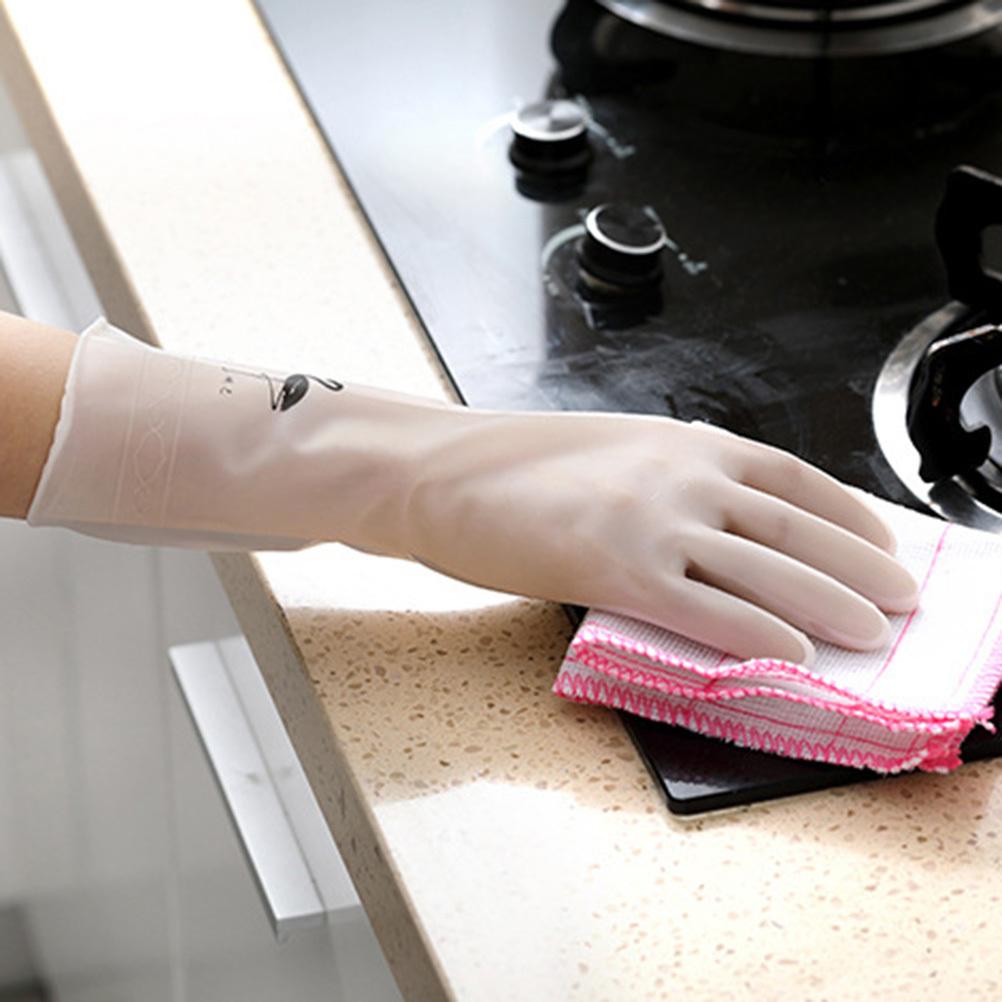 1 Pair Reusable Translucent Pvc Kitchen Cleaning Waterproof For Dishwashing Household Tasks Washing Gloves Kitchen Gloves