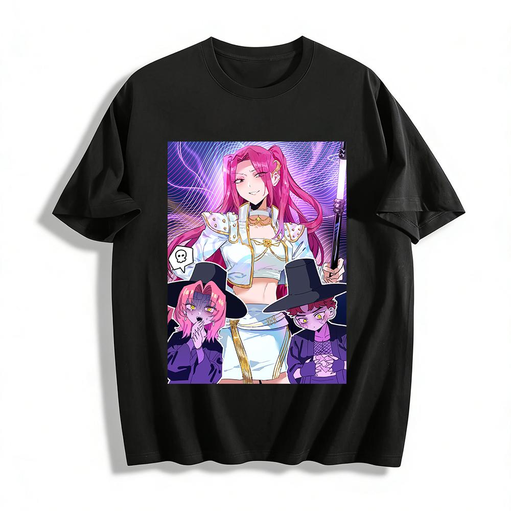 Anime Secondary Magenta Hair Purple Eyes Witch Print Top Trendy Niche Casual T-Shirt Pure cotton T-shirt
