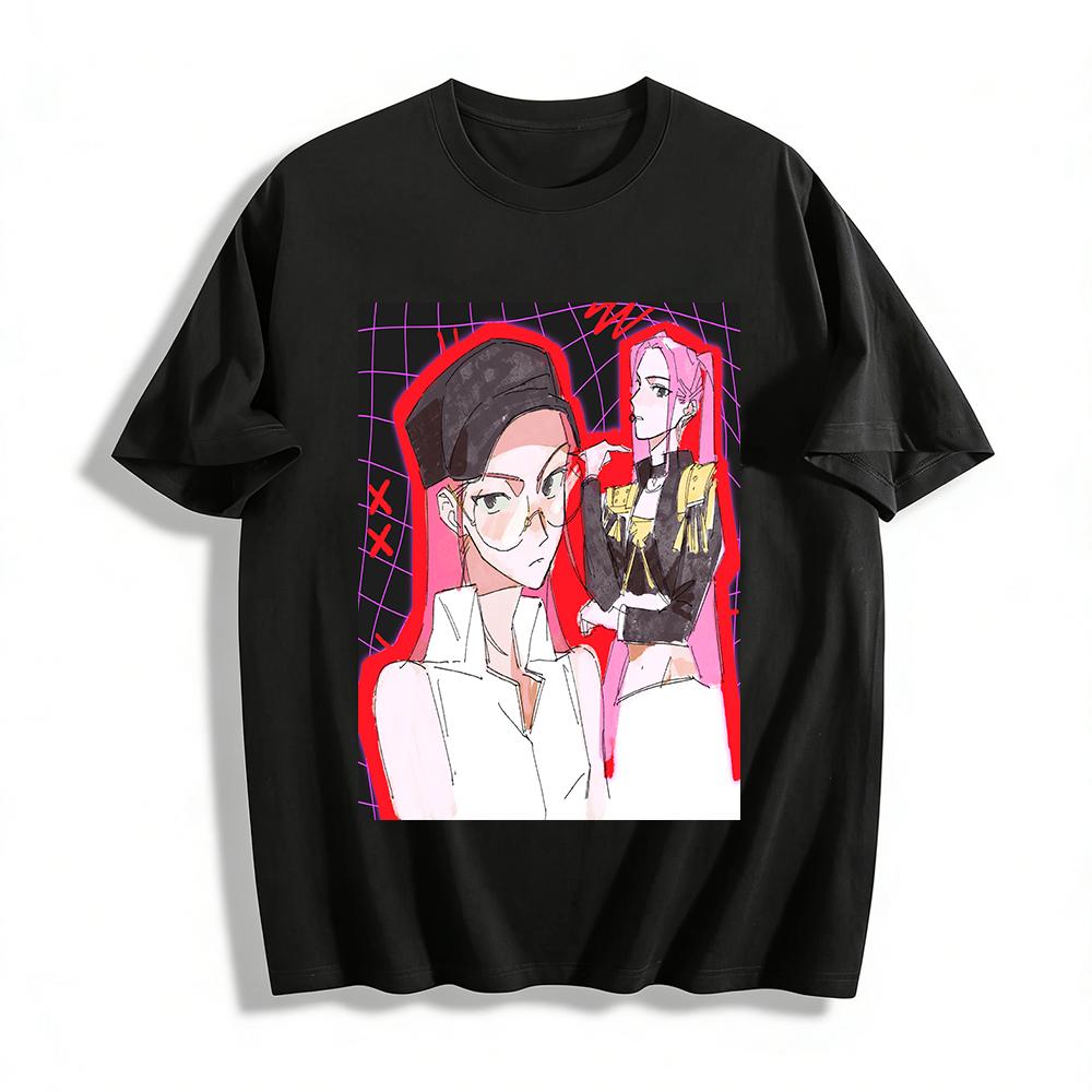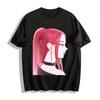 Dark Cool Twin Pink-haired Girl Print Top Trendy Anime Style Casual Loose Bottoming T-shirt Pure cotton T-shirt