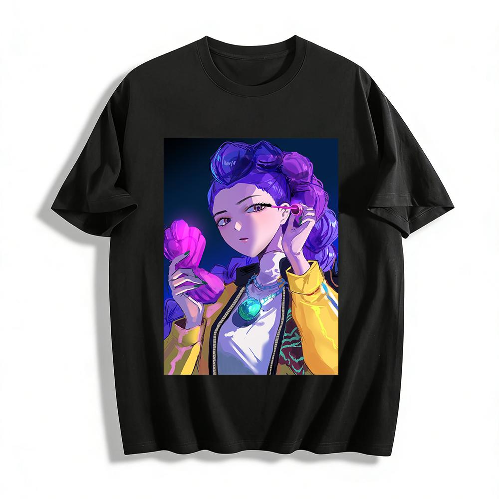 Cyberpunk Style Purple Hair Girl Print Long Sleeve Top Casual Loose Unisex Streetwear Pure cotton T-shirt