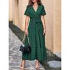 New Boho Swiss Dot Maxi Dress for Women, V Neck Flowy Short Sleeve Tie Waist A Line Long Dress