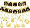 Ramadan Mubarak Banner Bunting Garland With Eid Lantern Moon Castle Sign For Islamic Festival Wall Hanging Party Decor