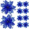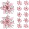 Valentines Day Flowers Glitter Artificial Poinsettia Floral Xmas Tree Ornaments DIY Garlands Home Wedding Party Decorations Gift