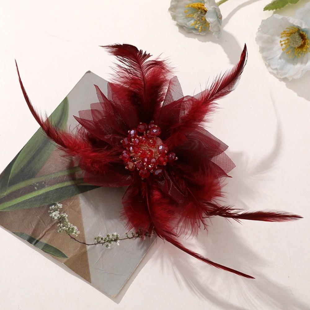 Handmade Feather Brooches Exquisite Pearl Crystal Flower Corsage Hair Accessories Lace Artificial Flower for Pin