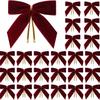 25pcs Multifunctional Small Red Velvet Christmas Bows with Cable Tie Rustic Garland Ornament Textured Christmas Tree Bows Wreath