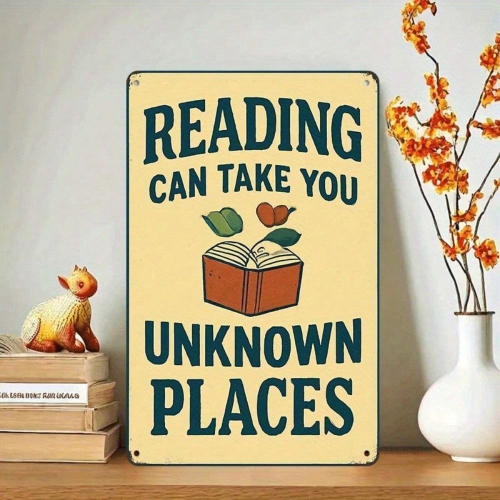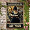 Metal Wall Art Vintage Poster Reading Takes You to the Unknown Gift for Bookstore