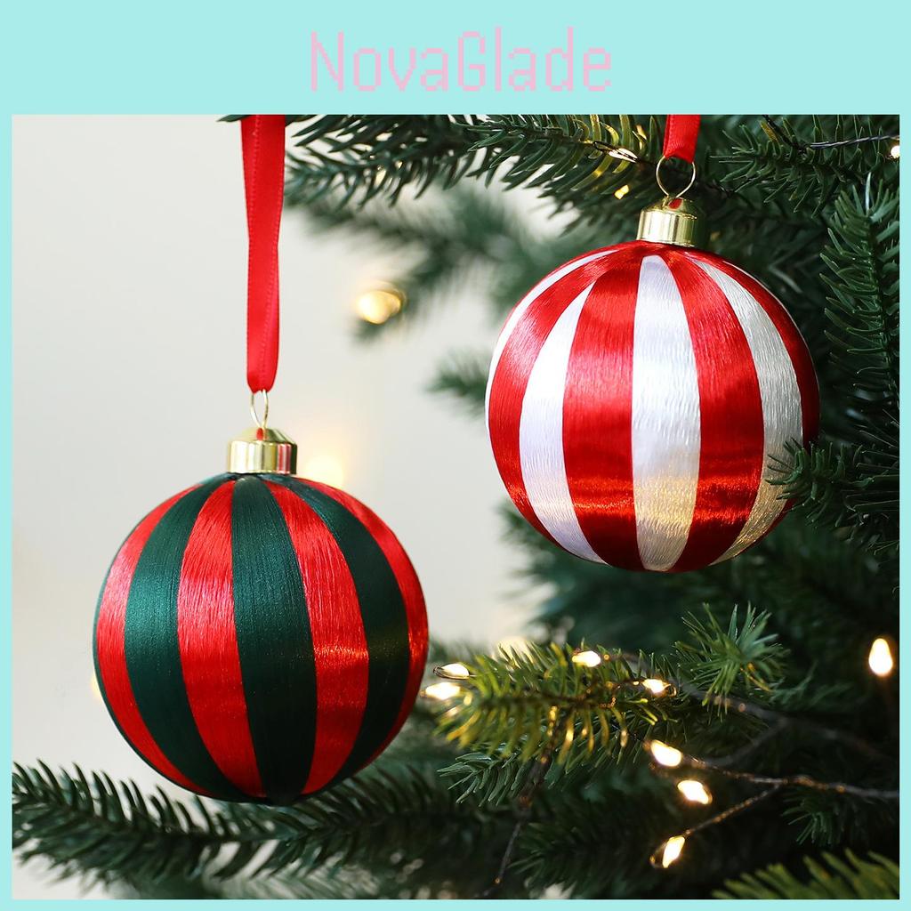 Christmas Tree Ornaments Set With Red And Green Woven Balls For Holiday Decor