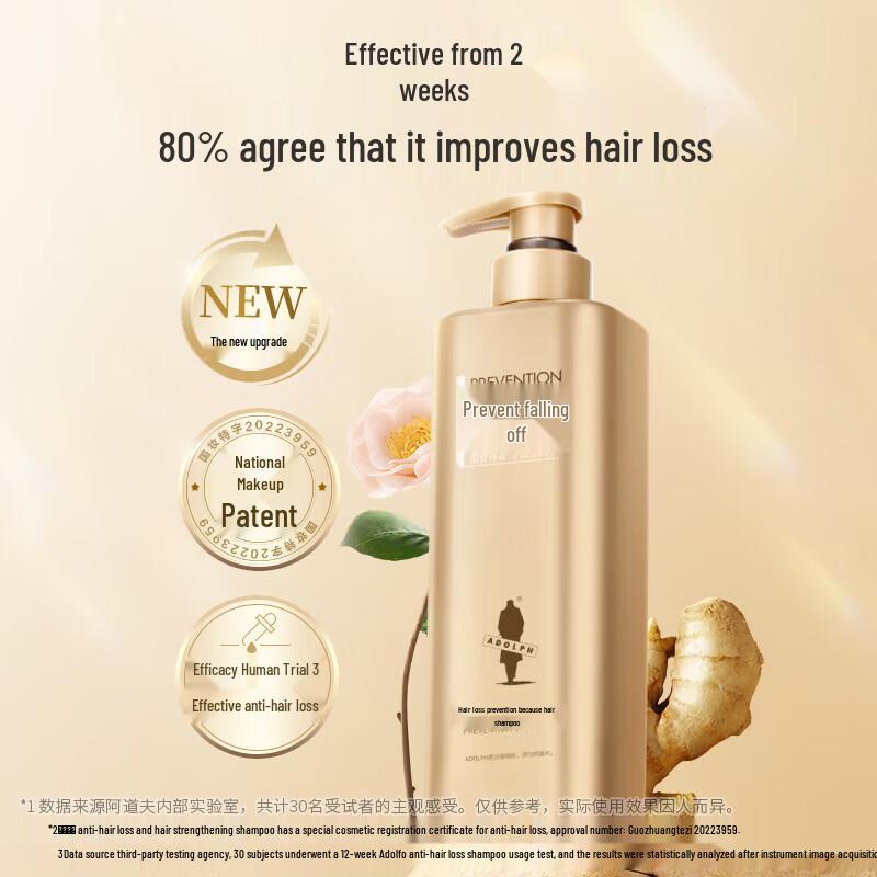 ADOLPH Ginger Anti-Hair Loss & Oil Control Shampoo is formulated to strengthen hair roots, reduce hair loss, and promote healthy hair growth. Infused with ginger extract, it effectively controls oil, helps reduce dandruff, and leaves your scalp feeling refreshed. Suitable for various hair types.