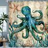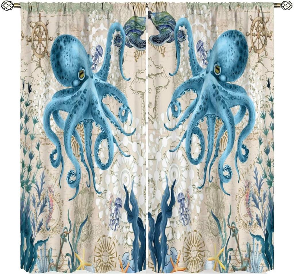 Octopus Curtains Ocean Animal Coral Nautical Map Starfish Sealifes Beach Theme Pattern Window Drapes Bedroom Kitch Curtain For Sleeping Area Polyester