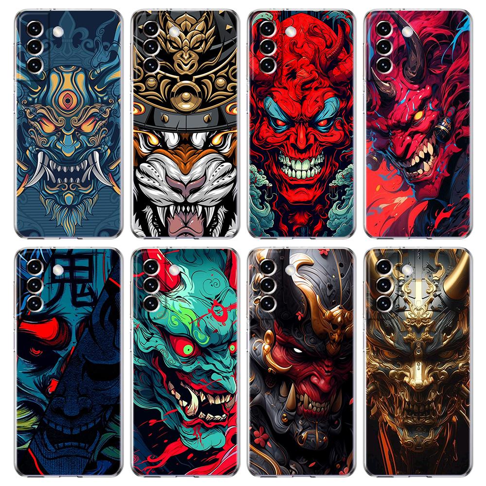 Japan Samurai Oni Mask Transparent Cover for Samsung Galaxy S24 S23 S22 S20 S21 FE Ultra S24 S23 S10 S9 Plus Soft TPU Phone Case