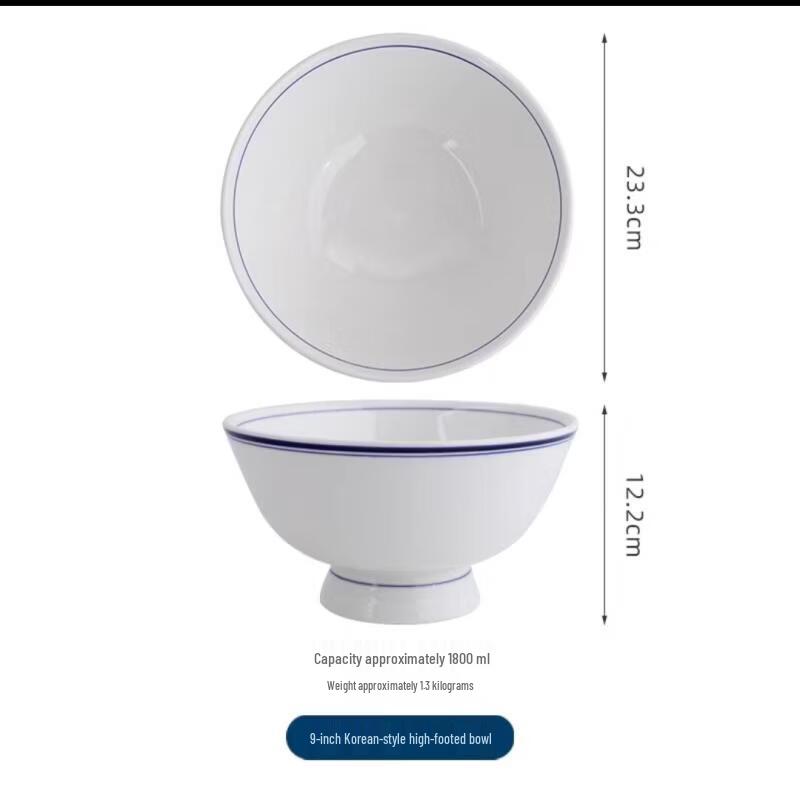 Korean Style Blue Line Ceramic Noodle Bowl