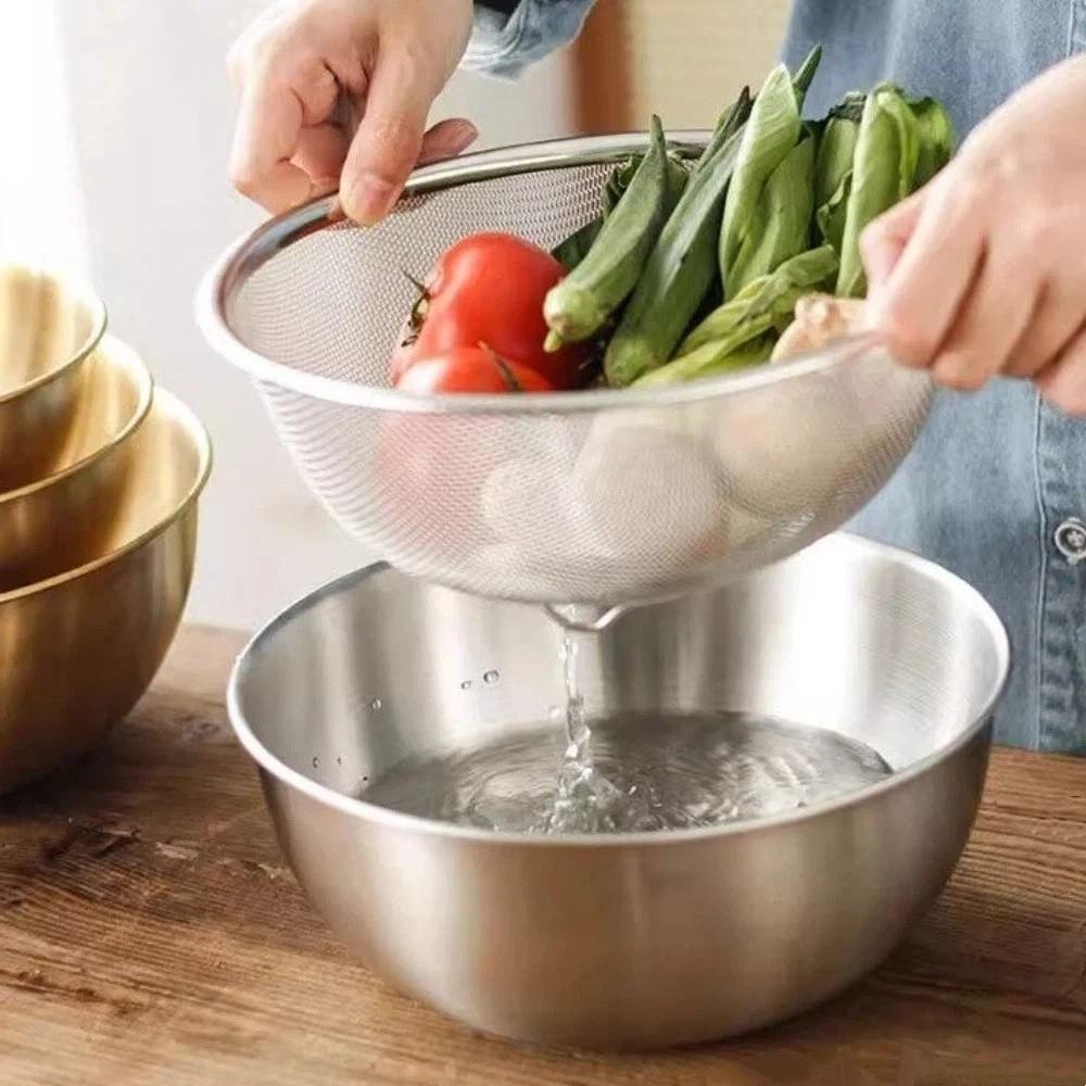 Mesh Fruit Vegetable Washing Bowl Double Layer Vegetable Fruit Strainer Household