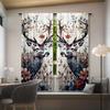 Flower Deer Printed Curtains Pole Bag Polyester Material Design Bedroom Home Decoration Curtain Set Of 2 Made Washable Master Ready