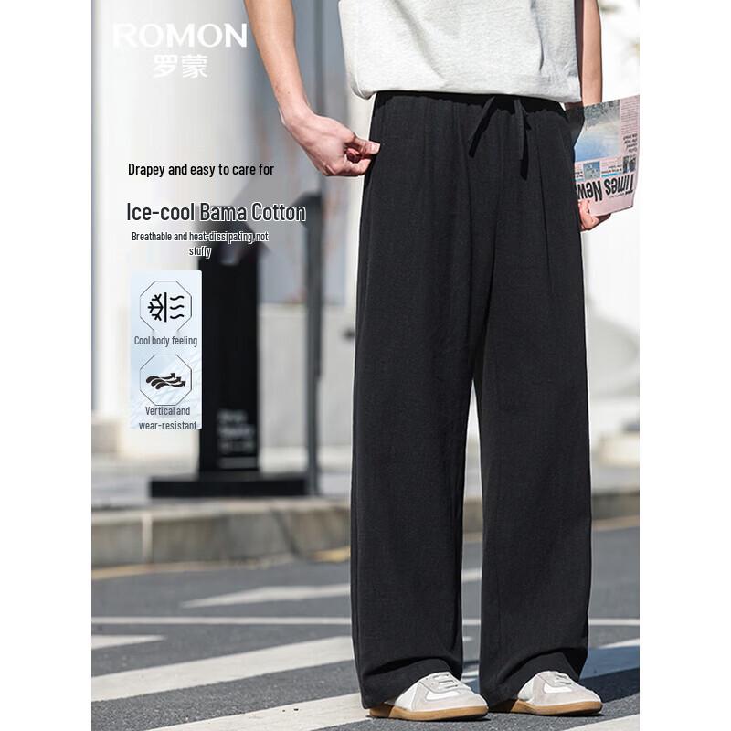ROMON Men's Loose Straight-Fit Casual Trousers