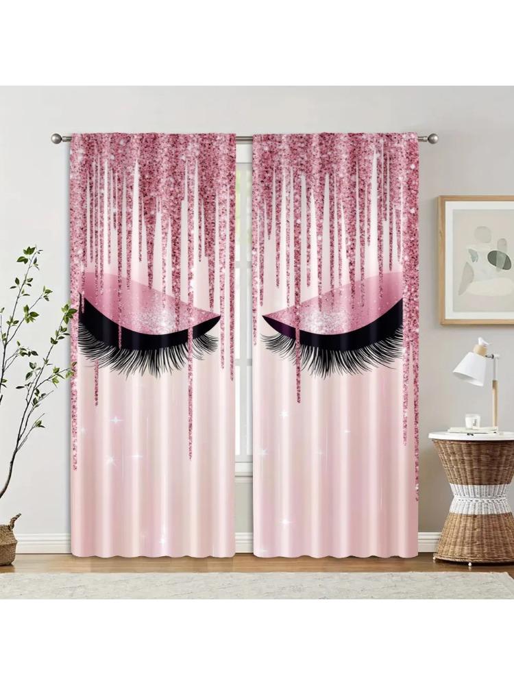 Curtains Window Treatment Print Pink Eyelashes Versatile Polyester Without Rod All Bedroom Living Set Of 2 Made Decor