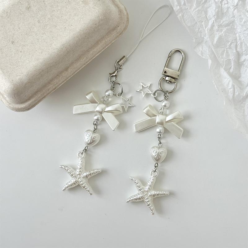 Baroque Bow Starfish Beaded Mobile Phone Chain Y2K Sweet Keychain Pendant Phone Lanyard DIY Bag Decoration