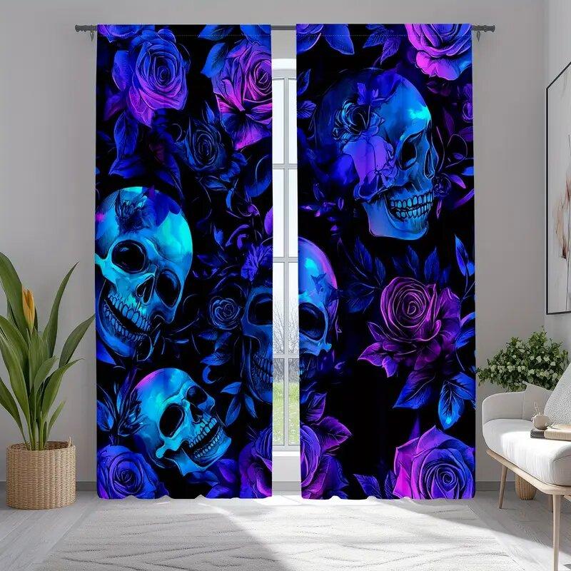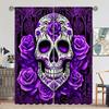 Gothic Skull Rose Pattern Printed Curtains Window Decorations Home Room Curtain Set Of 2 Made Polyester Washable