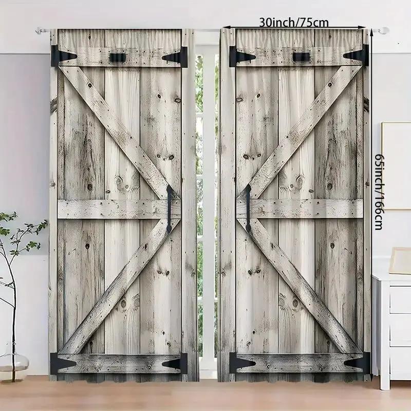 Retro Wooden Door Pattern Printed Curtains Christmas Decorations Bedroom Living Room Home Decoration Curtain For Area Made Of Polyester