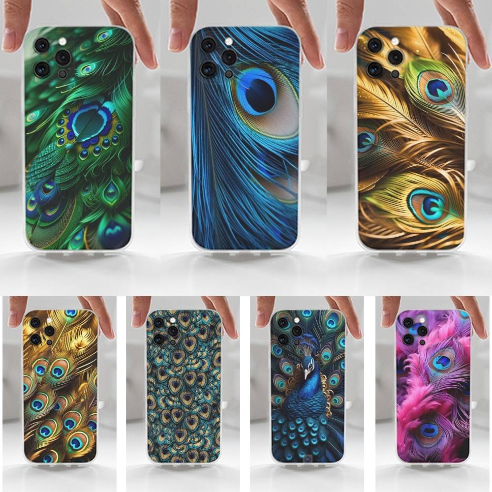 Peacock Feathers For iPhone 16,13,12,11,17,14,15,Pro,Max,Plus,X,XS,XR,SE,Mini Transparent Soft silicone Case