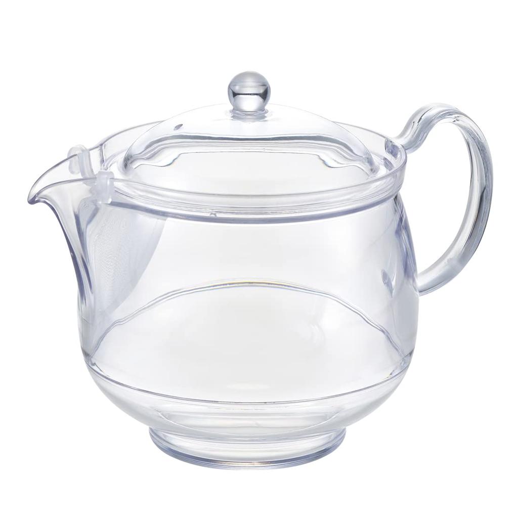 Unbreakable tea pot. Features a built-in strainer with a clip-like attachment for easy installation. Compact design and simple to attach.