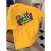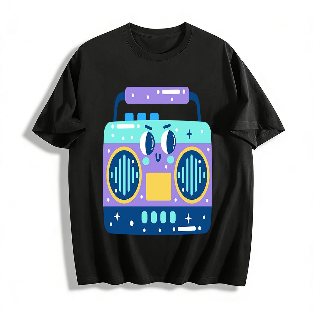Retro Cartoon Radio Print T-Shirt Unisex Casual Loose Fit Top Fun Graphic Tee for All Ages Pure cotton T-shirt