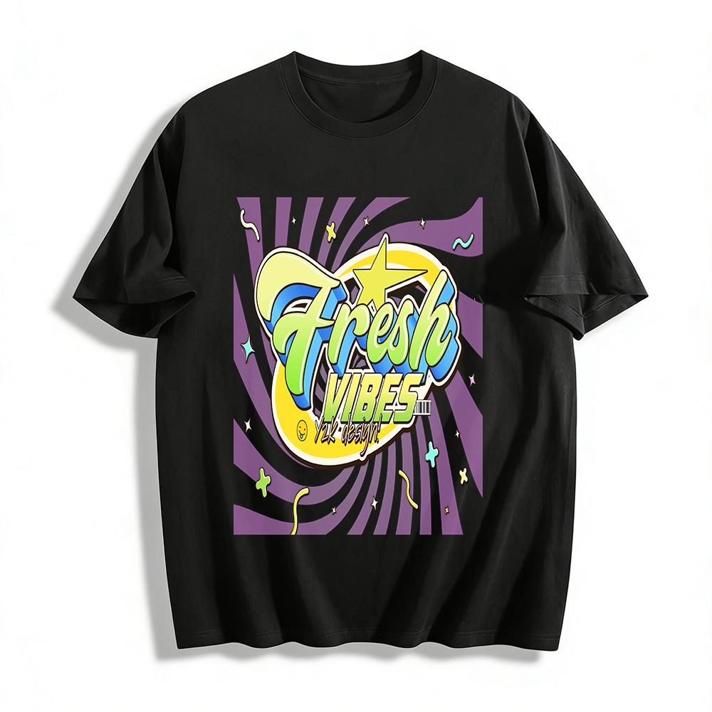 Y2K Style Fresh Vibes Graphic Tee Retro Trendy Colorful Print Casual Short Sleeve T-Shirt for Women Pure cotton T-shirt