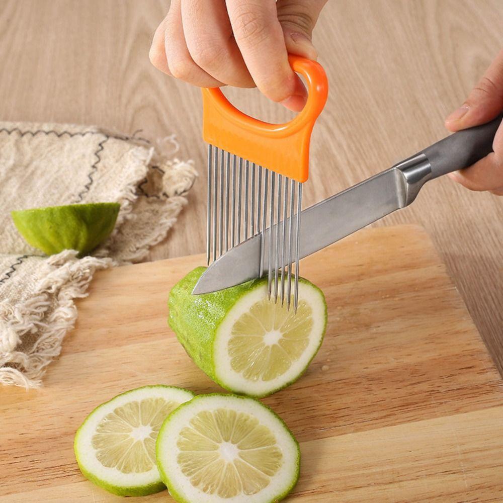 Effortless Onion Slicer Holder Stainless Steel Meat Tenderizer Needle Tomato Cutter Holder Fruit