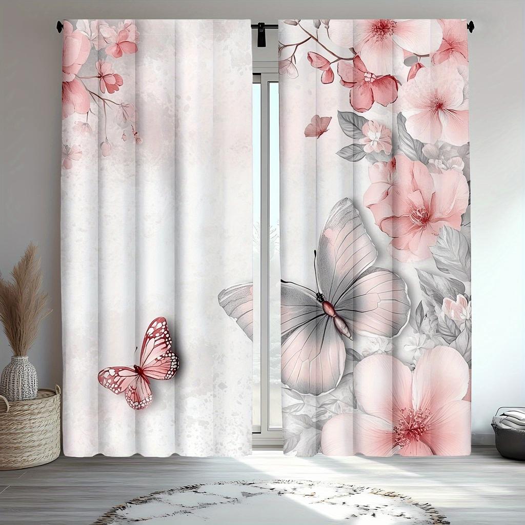 Wildflower Butterfly Print Curtains Polyester Fabric Perfect Bedroom Living Room Decoration Curtain For Made Of Machine Washable