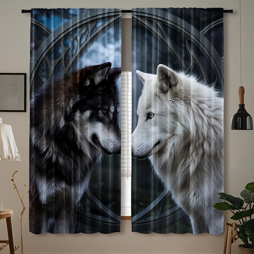 Black White Wolf Design Curtains Made Polyester Ideal Enhancing Bedrooms Workspaces Kitchens Living Ar Set Of 2 Bedroom Decor